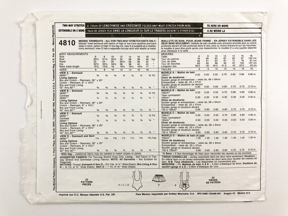 1990s One Piece Swim Suit Sewing Pattern Mccall S 4810 Etsy